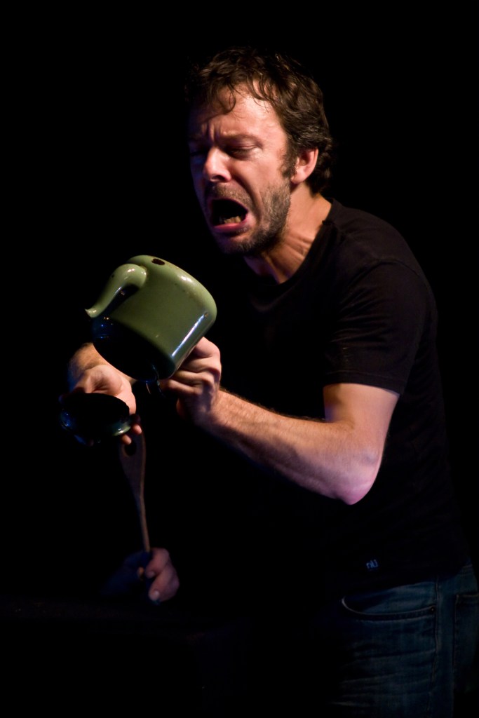 OD: C’est une position de narrateur. Il a le luxe de pouvoir passer d’un rôle à l’autre. Là, je suis le personnage que je viens de vous montrer, mais si j’en ai besoin je vais vous parler directement. Le narrateur/manipulateur n’est pas pris dans des conventions de théâtre. Il les génère.
