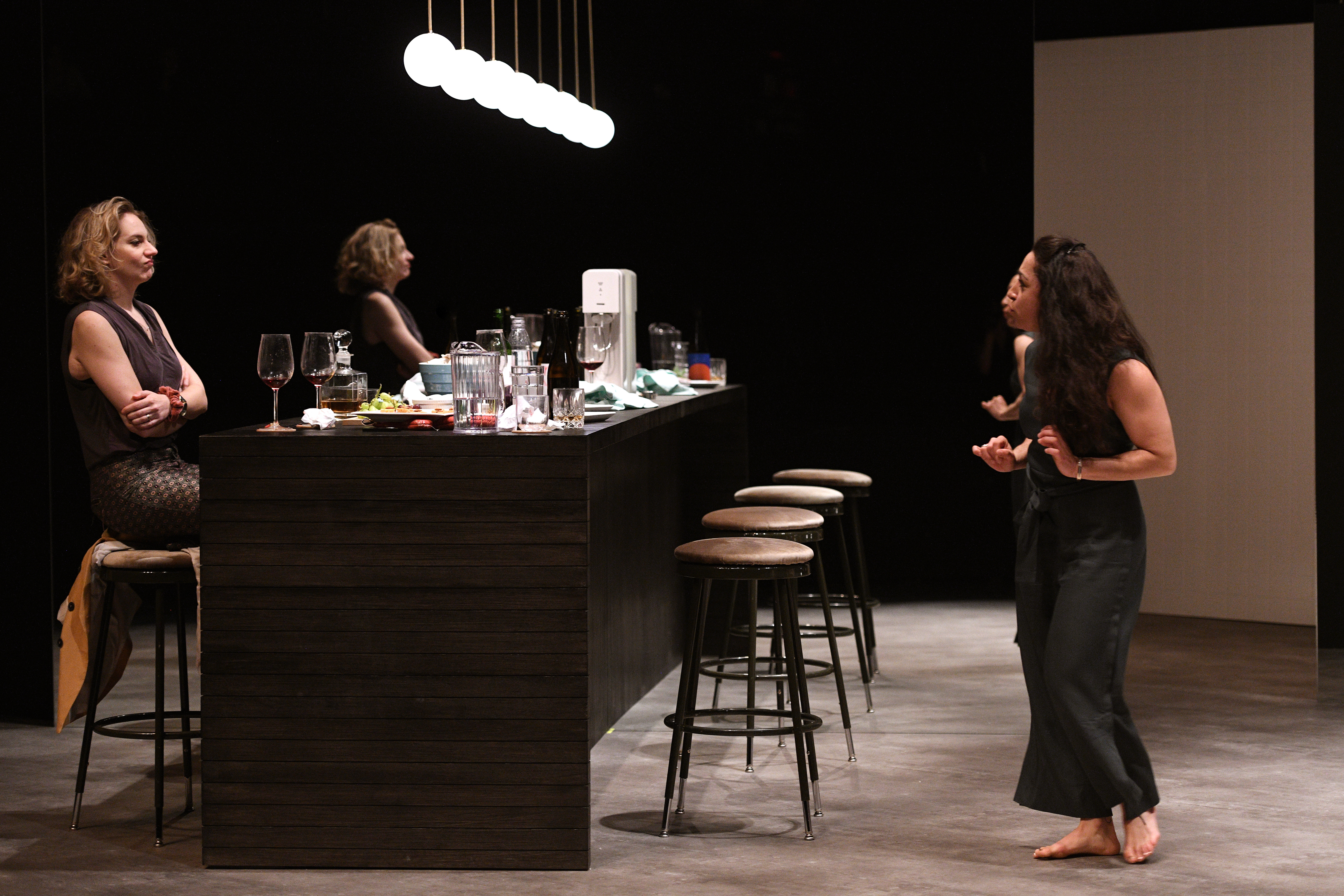 La mise en scène attentive de Sylvain Bélanger fait exploser le huis clos habituel chez Chabot pour laisser planer des « absences » – les personnages vont et viennent allègrement – et du hors-scène bénéfique – en arrière-plan ou par des voix qui viennent de la cuisine ou de la salle de bain. La scénographie (Zébulon) accentue ces effets en plaçant quelques miroirs qui « dédoublent » les personnages et « fondent » les spectateurs dans le décor.