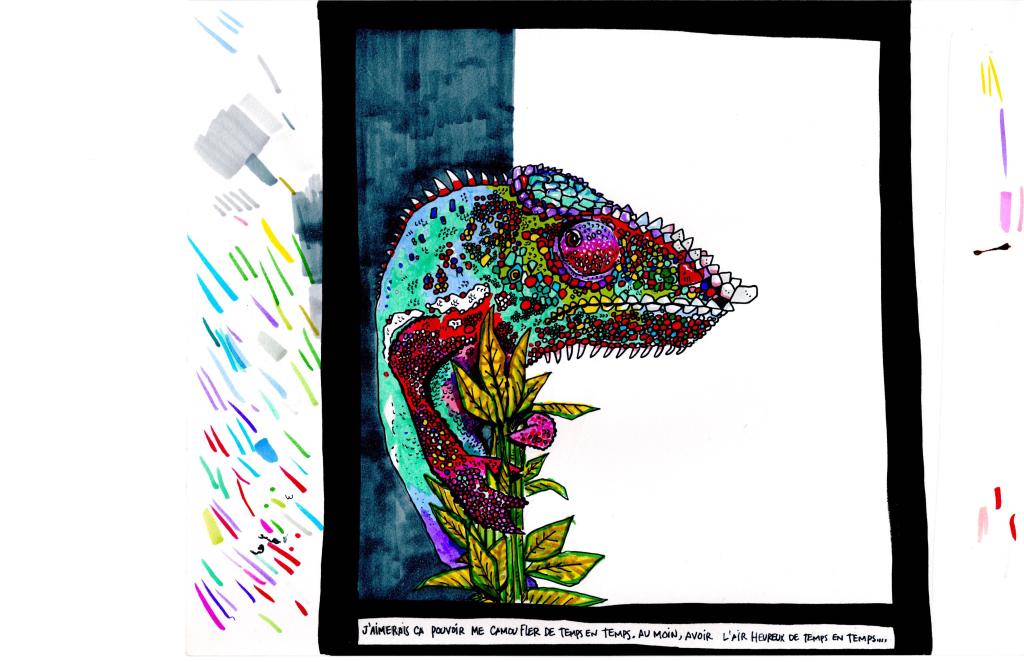 L’insurmontable peine d’amour prends moins de place. Le narrateur s’identifie à son poisson rouge dans son bocal. Il nage toujours en eaux troubles, mais reste proche de la surface. L’oxygène semble moins lui manquer. L’avenir apparaît plus… coloré!