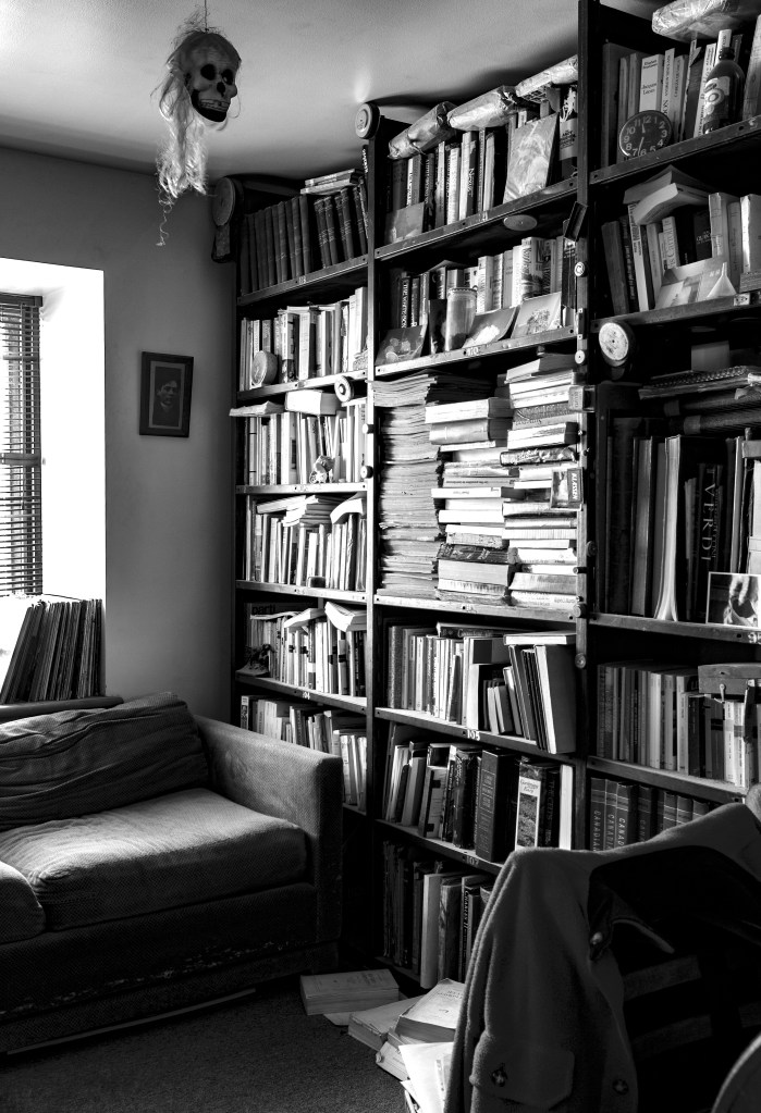 » J’étais presque toujours étourdie en entrant chez lui. Au premier regard, ce qui m’a étonnée ce sont les dictionnaires. C’était quotidien les consultations qu’il y menait. Il y avait bon nombre de dictionnaires de langues aussi. Il lisait l’italien, l’allemand, il apprenait l’espagnol. Il réapprenait le grec. La première fois que j’y suis entrée, j’ai trouvé ça monumental. Comme si Réjean Ducharme venait d’en sortir. Je n’osais pas m’asseoir sur sa chaise et toucher les livres, mais il le fallait. C’était une chance extraordinaire. «