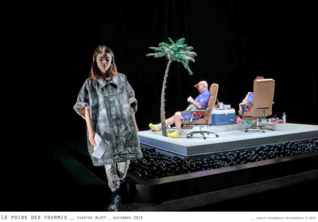 Cette production du Théâtre Bluff vaudra à Odile Gamache une bourse de 2 500 $. En plus de cette récompense pour Le poids des fourmis, Odile Gamache avait reçu en 2019 le Prix de l’Association québécoise des critiques de théâtre pour sa scénographie du spectacle Les Larmes amères de Petra von Kant présenté au Prospero.