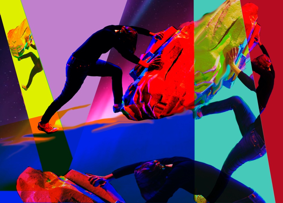 Cet humour sympathique s’entremêle avec des scènes plus sombres, comme celle qui symbolise la vie comme un combat. Le personnage donne des coups à un ennemi invisible jusqu’à l’épuisement. Ce solo troublant rappelle la violence inhérente aux spectacles de Daina Ashbee.