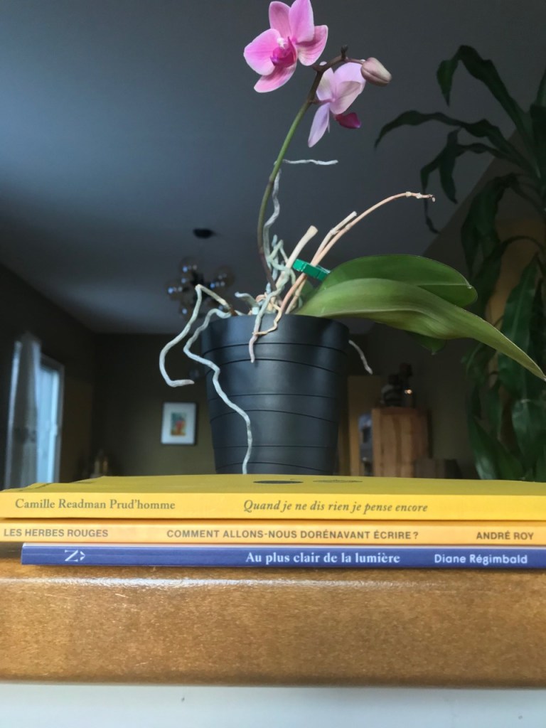 « je déballe les objets / dont j’ai oublié le nom / sauf en blasphèmes / je n’ai pas ma confirmation / je n’ai jamais servi la messe // le cérémonial fait frissonner mes doigts / je ne voudrais rien briser / par respect / pour ceux qui m’accueillent // je pense à ce que je tiens / de sacré / et de lourd / à tout ce qu’il y a à ramancher // je suis avec eux / je ne peux pas baisser les bras »