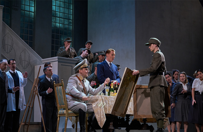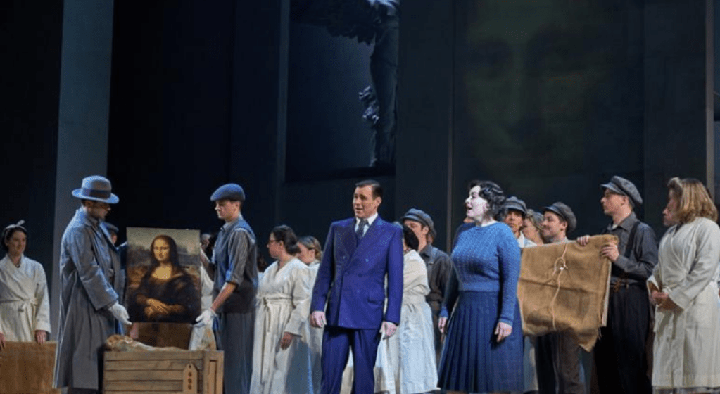 Ce soir, fi du cinéma et des livres écrits sur le sujet, c’est à un opéra que nous sommes conviés. Et le titre, vous l’aurez compris, donne froid dans le dos. L’argument est connu. Le voici sous forme d’interrogation : « Comment préserver des barbares nazis les œuvres qui témoignent de la beauté du monde ne serait-ce qu’en existant? » C’est cette existence même qui est menacée.