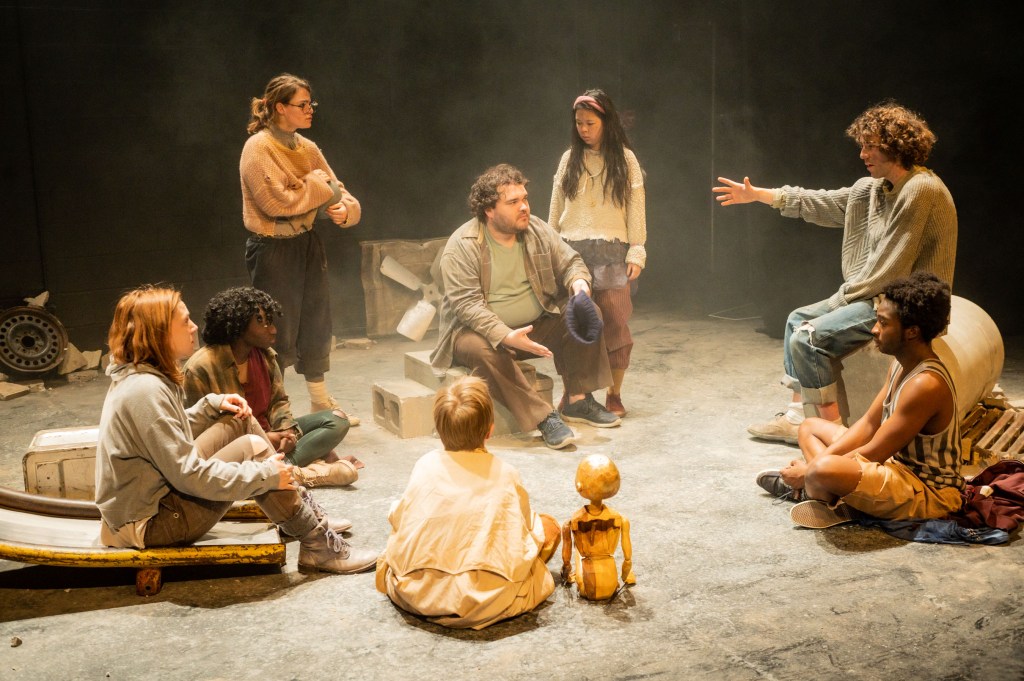 Le lieu de la pièce n’est pas identifié, mais on comprend que la haine, la violence et la division troublent le microcosme des enfants qui voudraient ne plus avoir à traiter avec des adultes obsessifs et/ou indifférents. Dans un futur pas trop lointain, le groupe se forme autour d’un enfant qui possède une poupée/marionnette qui pourrait être magique aux yeux de certains, mais pas de tous et toutes.